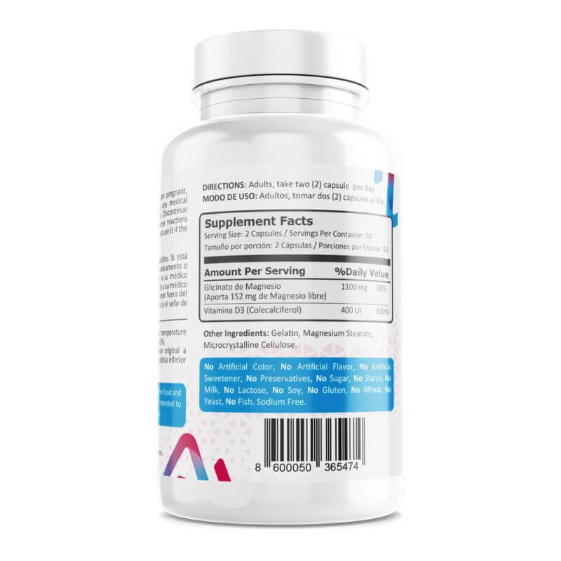 El Magnesio Glycinate es un refuerzo para el fortalecimiento de huesos, facilitándole al cuerpo absorber calcio y fósforo, esencial para la salud del sistema óseo y muscular.