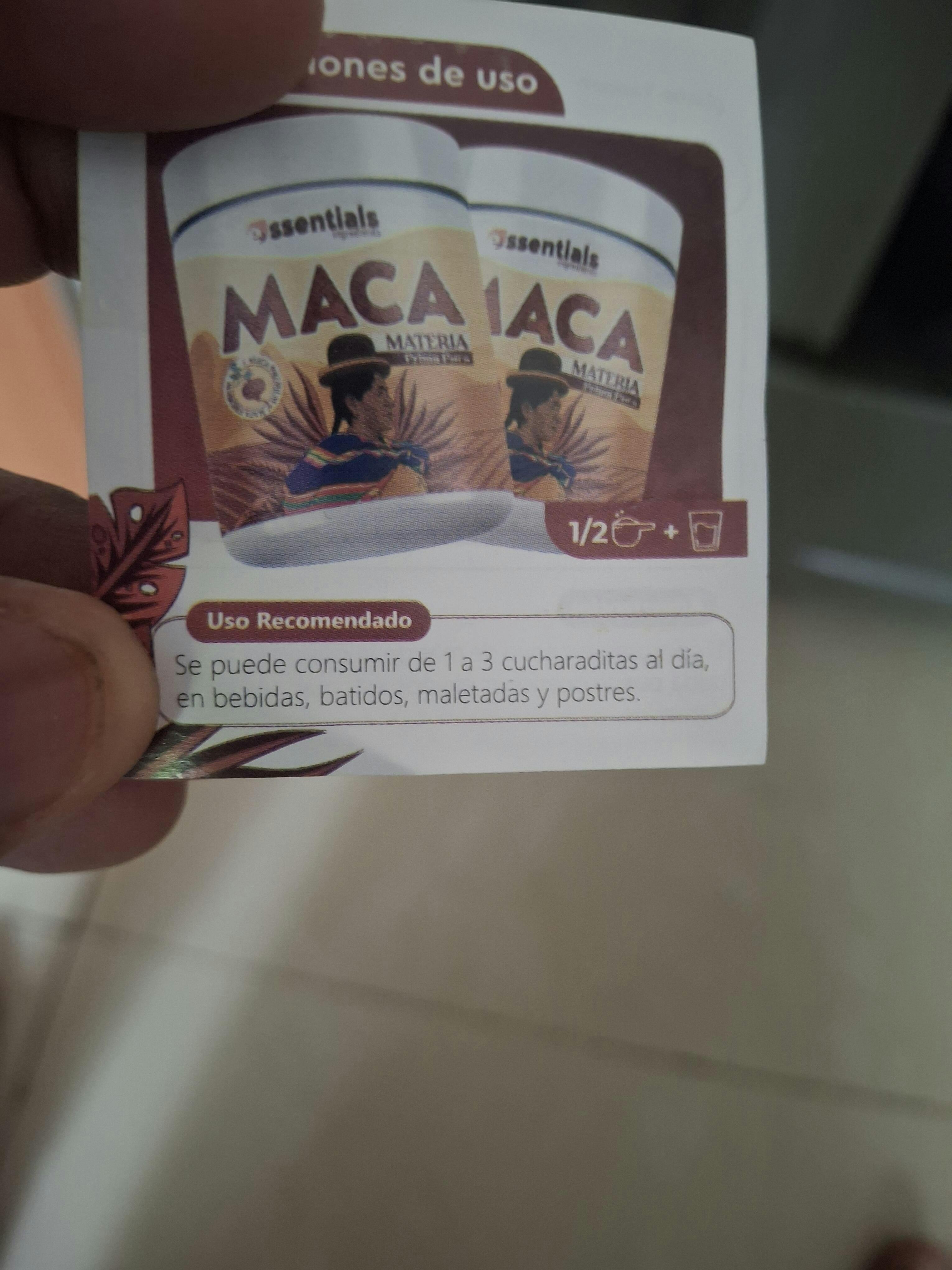 Se recomienda tomar entre 2.5 a 5 gramos diarios (media cuchara dosificadora) junto con las comidas de Maca en polvo. Para mejor absorción, puede diluirse en agua o añadirse al desayuno.