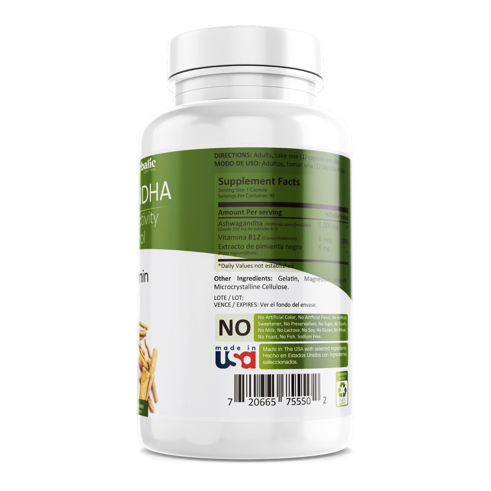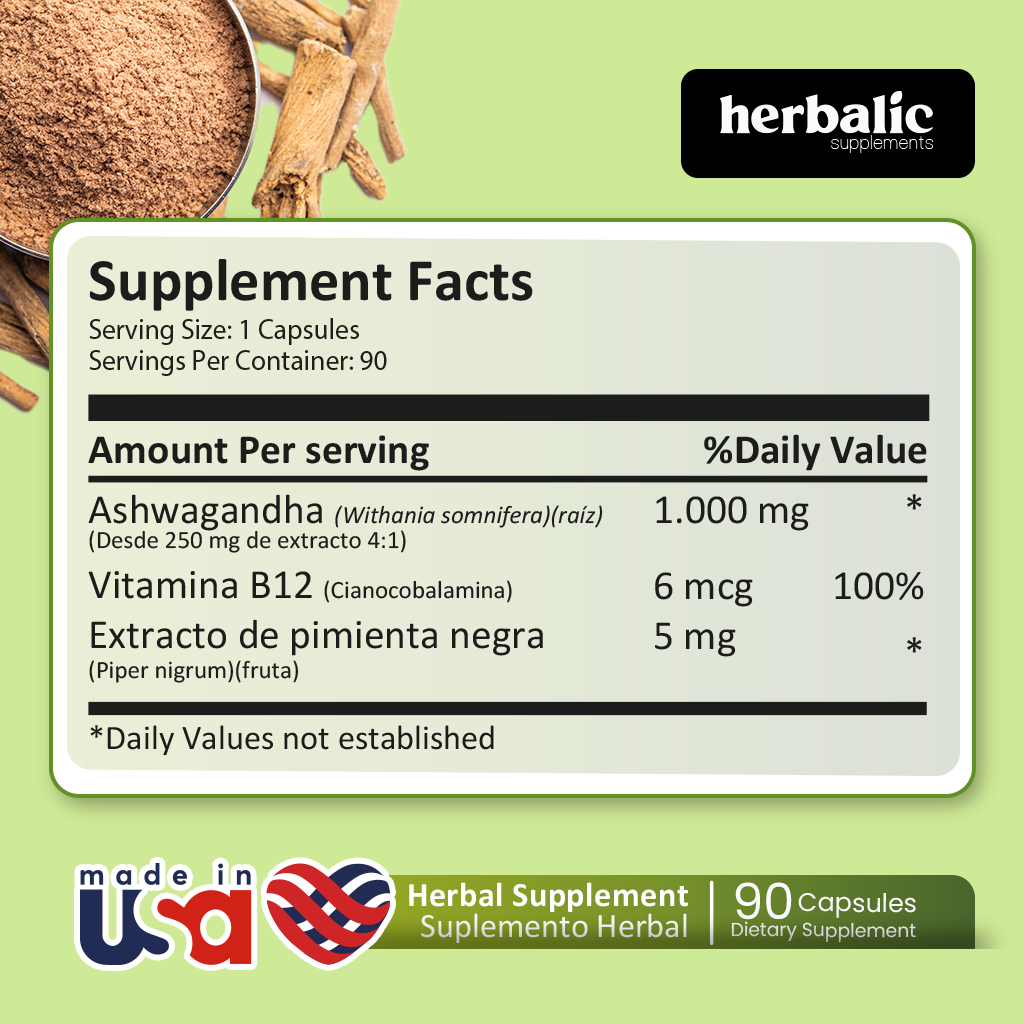 La piperina potencia la biodisponibilidad de los nutrientes, mejorando la absorción de la Ashwagandha y la vitamina B12, para que tu cuerpo aproveche al máximo sus beneficios.