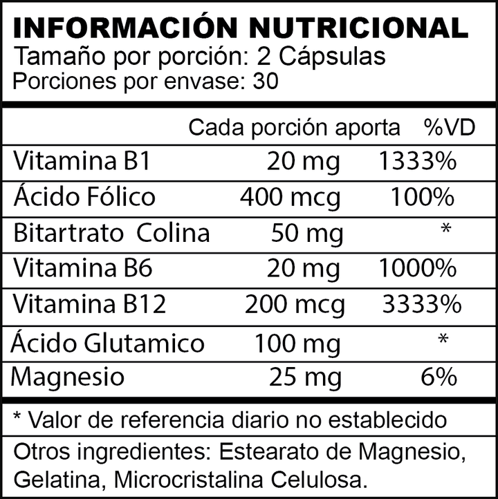 En su composición destacan las vitaminas B12 y ácido fólico (B9), fundamentales para la salud cerebral. Estudios han demostrado que estas vitaminas actúan de forma sinérgica ayudando a prevenir el deterioro mental, la demencia y la enfermedad de Alzheimer.