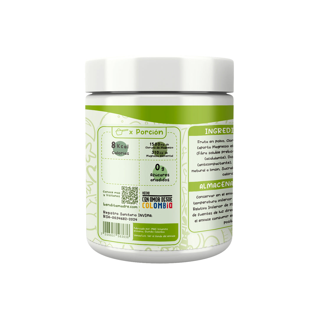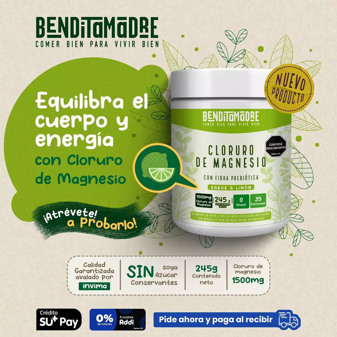 El Magnesium Choride en Polvo de Bendita Madre te ofrece beneficios clave: fortalece huesos, relaja músculos, mejora la digestión y apoya la salud cardiovascular. Con un delicioso sabor a limón y alta absorción, es tu aliado para una vida más saludable y activa.