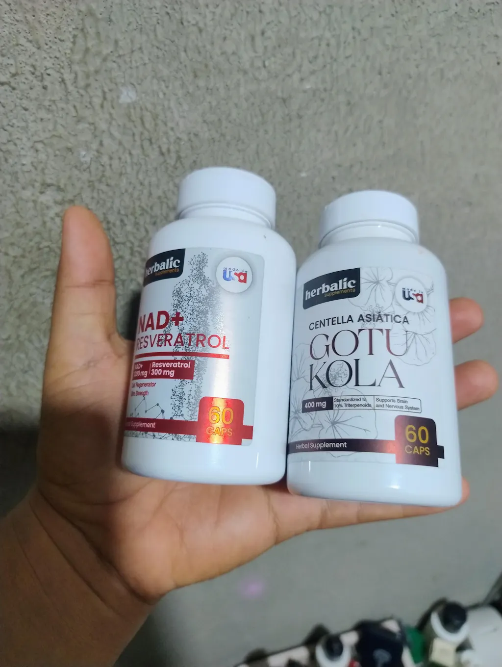 El NAD+ Resveratrol (60 cápsulas) dura 30 días. La gotu kola (60 cápsulas) dura 60 días con la dosis de 1 cápsula diaria.