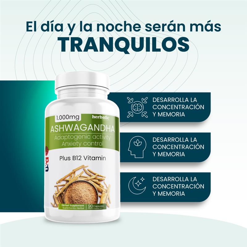 La Ashwagandha incluye vitamina B12, que potencia tu energía y enfoque mental.
