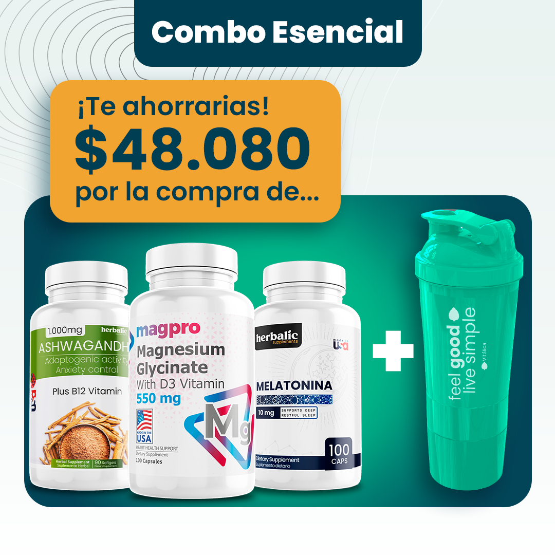 Compra hoy mismo nuestro combo de Glicinato de Magnesio y Ashwagandha y recibe GRATIS tu Guía Digital Básica para Dormir Mejor y Reducir el Estrés. Descubre consejos prácticos y fáciles de implementar para comenzar a mejorar tu descanso y manejar el estrés. Esta guía es un recurso digital que recibirás por correo electrónico tras tu compra.