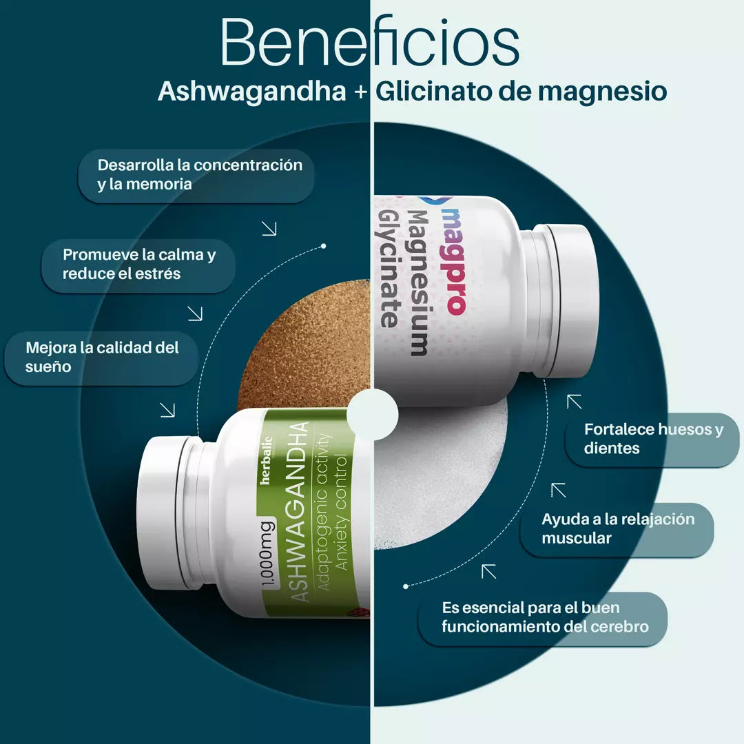 • Ashwagandha 1000mg + Glicinato de Magnesio 550mg