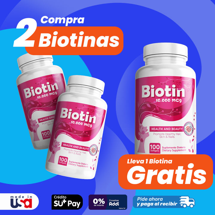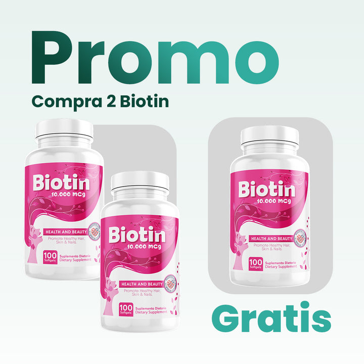 Adquiere ahora esta promo paga 2 lleva 3 Biotina 10000 mcg x 100 softgels Americana