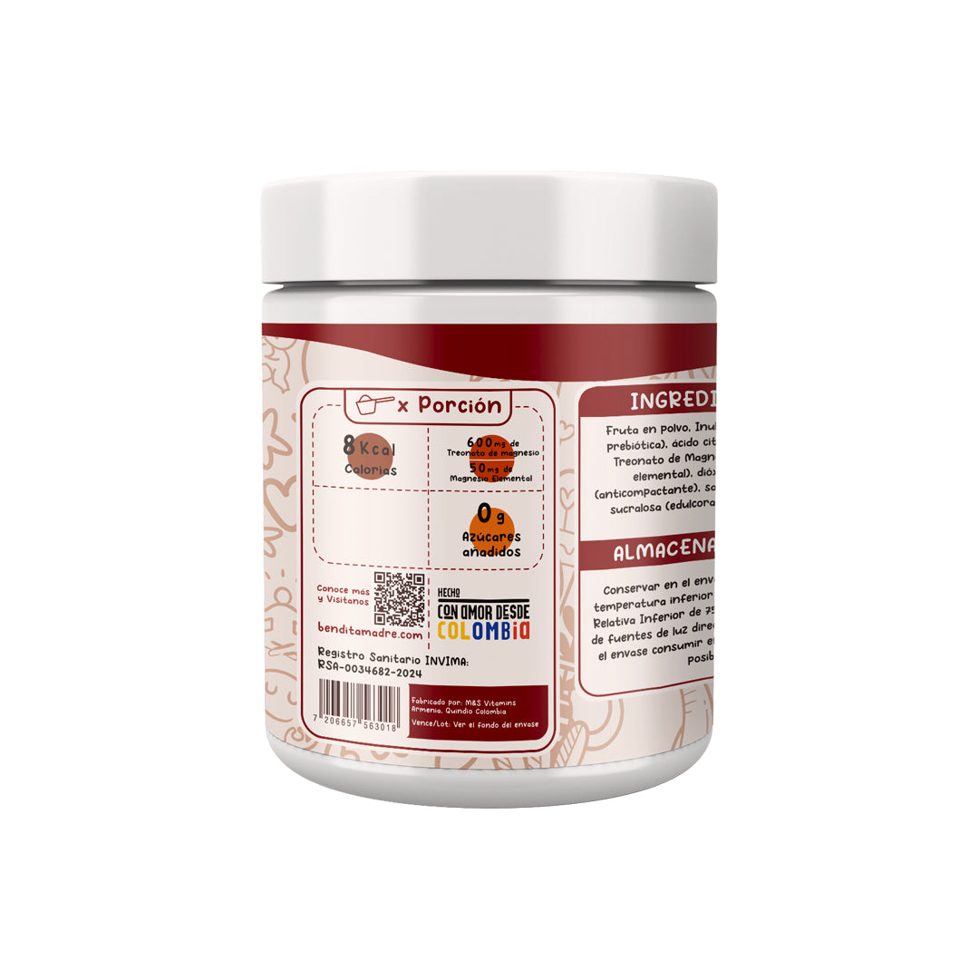 ¿Buscas mejorar tu memoria, reducir el estrés y dormir mejor? El l-Treonato de Magnesio en Polvo de Bendita Madre es ideal para ti. Con una fórmula avanzada que atraviesa la barrera hematoencefálica, este suplemento te ayuda a potenciar tu función cognitiva, regular los ciclos del sueño y mantener un equilibrio emocional.