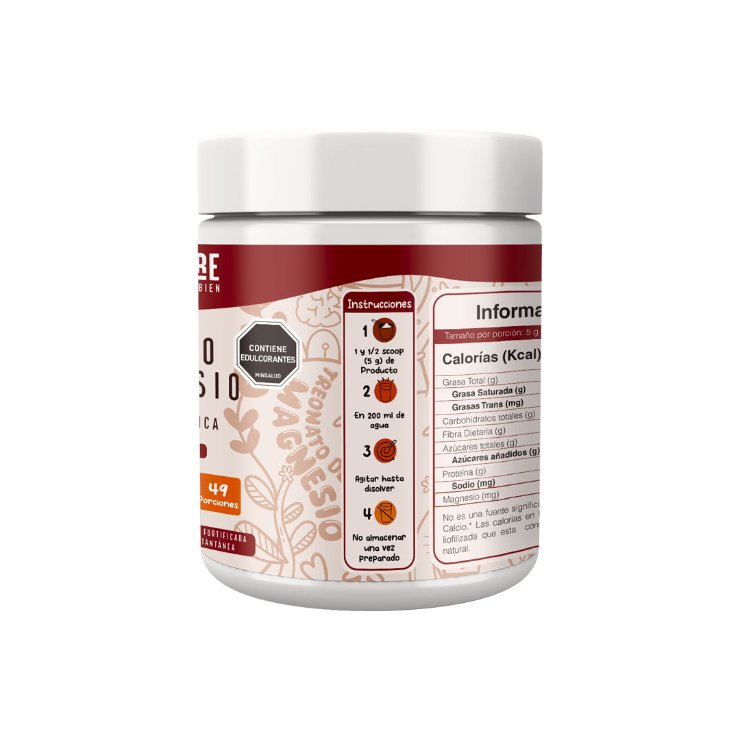 El magnesio contribuye a la densidad mineral ósea y mejora la absorción de calcio en los huesos. La fibra prebiótica promueve una digestión saludable.